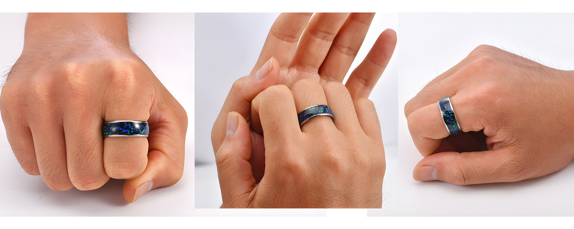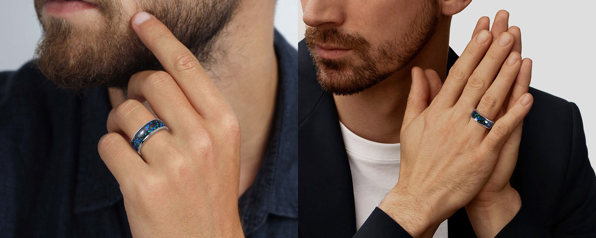 - Material: Tungsten Carbide & Opal Stones