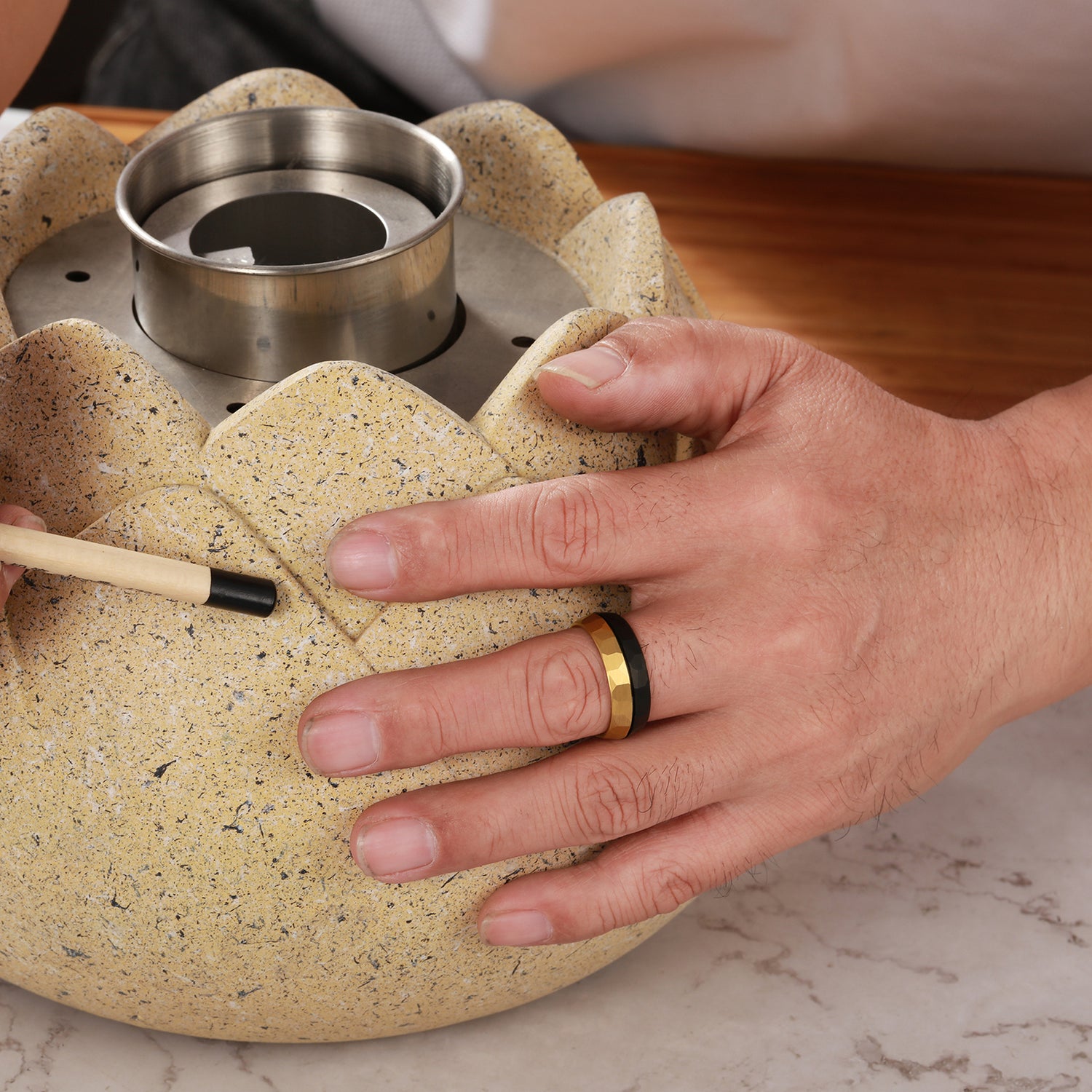 Gold & Black Two-Tone Hammered Tungsten Carbide Rings for Men (HI-0210)